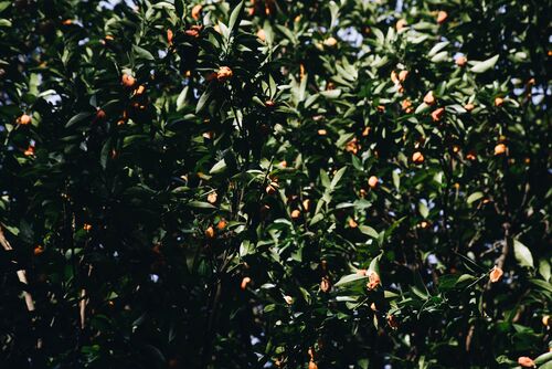 Pentax K-1mk2,SIGMA APO 70-300mm f4.0-5.6 DG Macro 筑波山の名物に福来(ふくれ)みかんという小ぶりのみかんがある。 福来みかんがたくさん実を付けてるなーと思ったら、ぜんぶ中身が空っぽだった。野鳥がたべてるのかな。